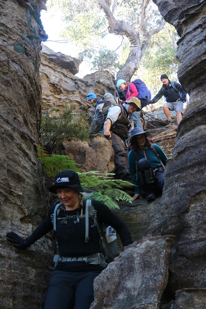 The MountainSphere navigation weekend is a 2 day educational bushwalk that provides clients with practical training on the skills of navigation off the beaten track by map and compass. Expert tuition in map reading and use of a compass is provided, and participants immediately put these skills in practise to find a route and navigate to a beautiful campsite hidden in the heart of a sandstone wilderness. Apart from the educational aspects, the navigation weekend is an excellent opportunity to get off the beaten track and explore a beautiful wilderness area in a small group expedition with people who are there for the same reasons you are.