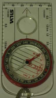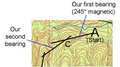 Once this has been done, our compass reads a new bearing of 245°. This is our magnetic bearing. |