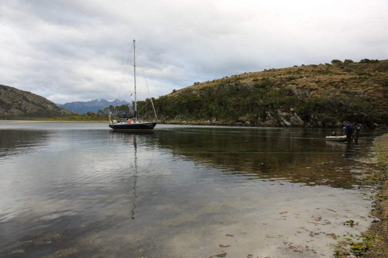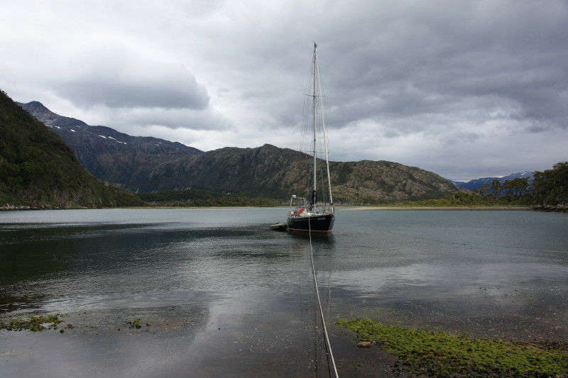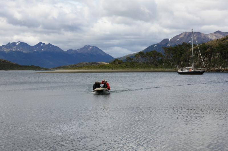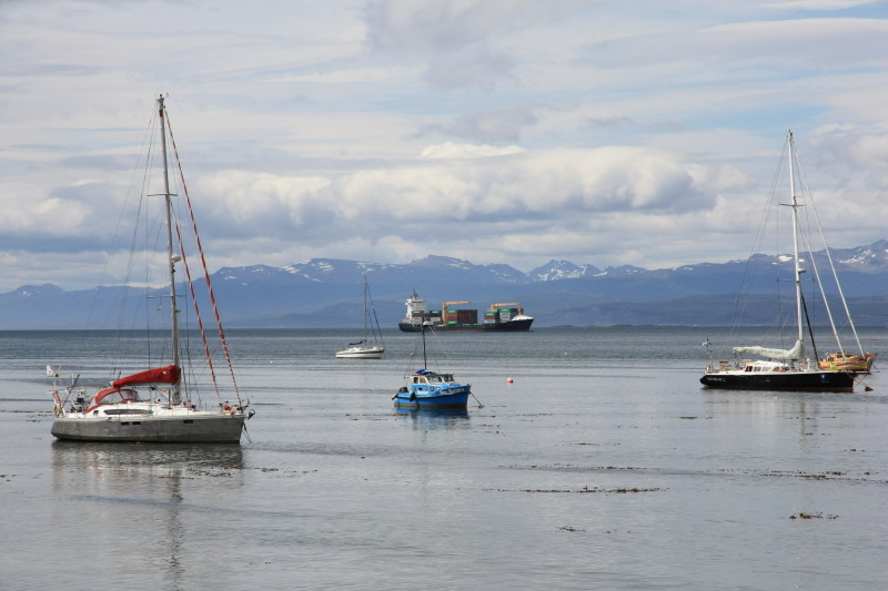 14 Jan 2013 | Load the boat, went to the Ushuaia "Prefectura" to complete immigration paperwork and have our passports stamped out of Argentina. Sailed east in heavy sea and some windy weather to Puerto Williams. Visited customs in Puerto Williams to complete immigration paperwork and have our passports stamped into Chile. Explored Puerto Williams (which doesn't take long) then returned to our boat. Late that evening we set sail once more, heading westwards up the Beagle Channel. |