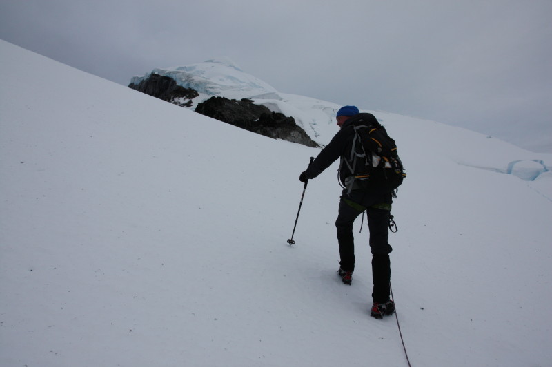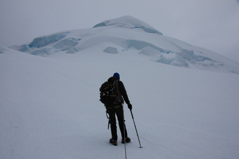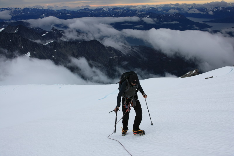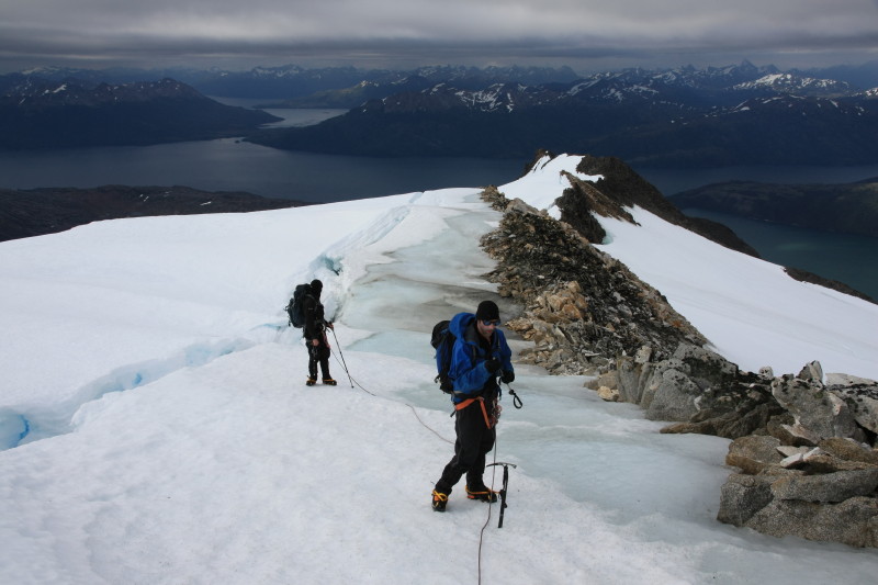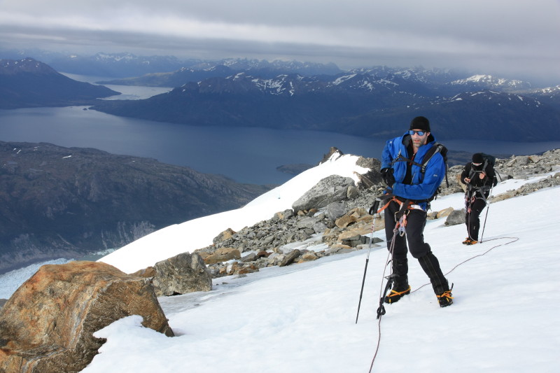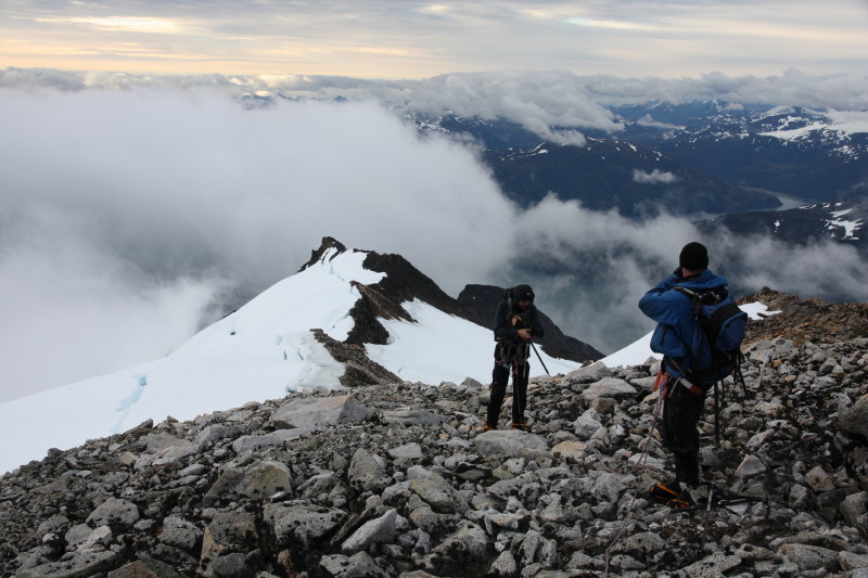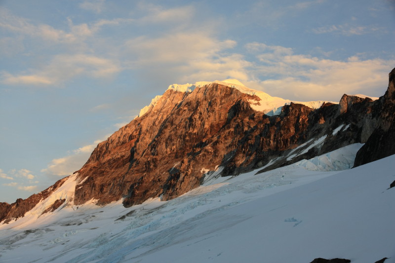 We woke up to a fine morning and the sun touching the summit of Monte Frances. We quickly got going on our attempt at this summit! |
