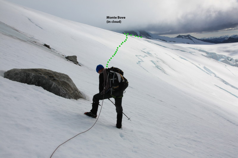 These photos are of our excursions above our high camp to the peaks of Monte Bove (summit not reached) and Monte Frances (summit reached).