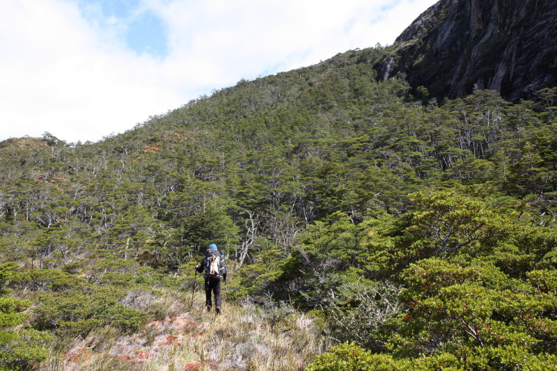 To reach Monte Italia we crossed the stream at our base camp and then made our way up through this forest onto the ridge you can see in this photo. |