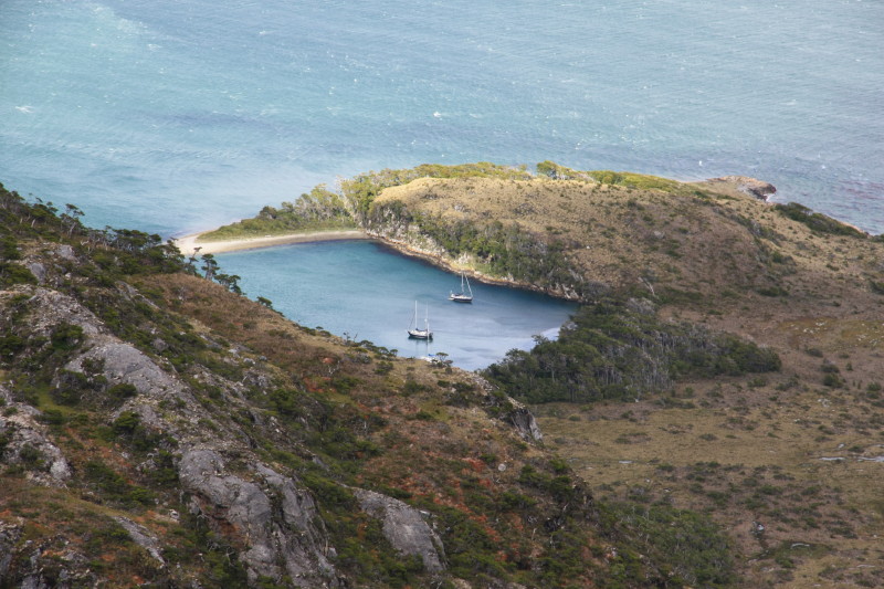 Once on the ridge we could look back down to Caleta Olla where our boat and one other were moored. |