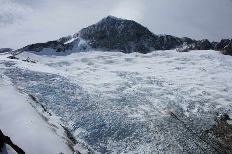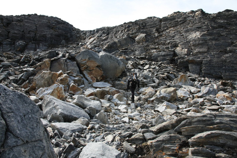 We headed up the ridge and it wasn't long before we were above the treeline and into the zone of bare rock. The ice field is not much further up from here. |