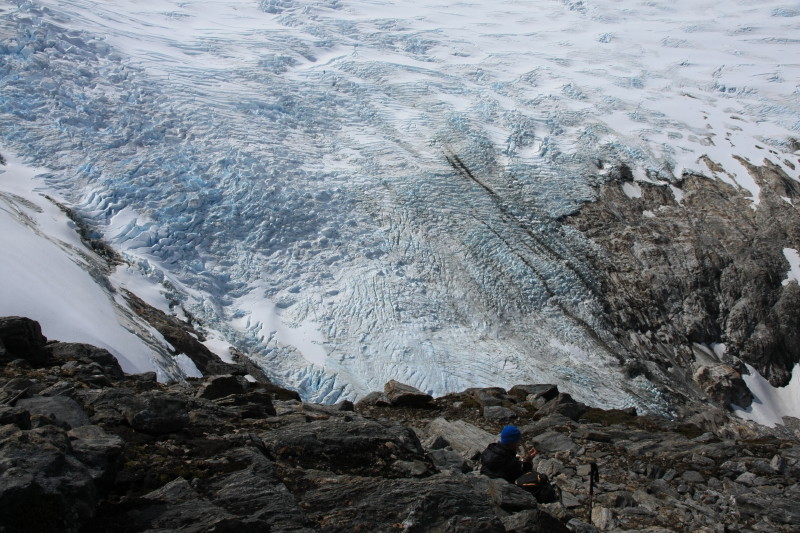 Taking a break with great views of the Frances glacier.