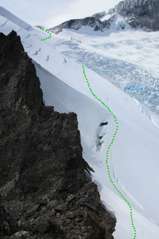 We camped here on the night of 25 Jan and on the 26th we waited for a clear break in the weather before making our attempt on Monte Italia. We set off late morning, but turned back due to poor visibility. |