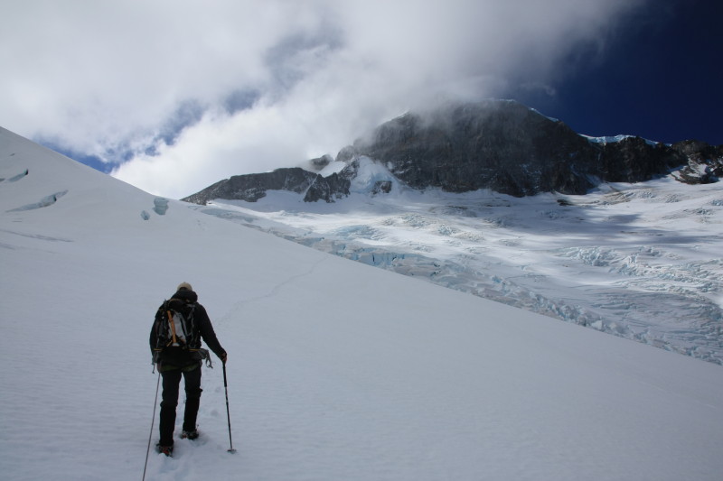 A few hours after returning to the tent due to poor visibility the weather cleared again, so we made another attempt at Monte Italia. |