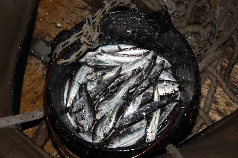 The harbour was teaming with fresh sardines. Marcel went out with his dinghy and a net and caught a whole bucketful of fresh sardines to supplement the steaks on the barbeque!