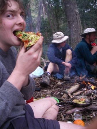 Below - The evening by the camp fire