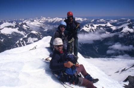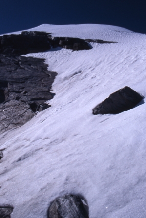 Finally, all that is left between us and the summit is this ridge of snow. We roped up and climbed this ridge in a series of picthes until we reached the summit at 1:15pm. | |