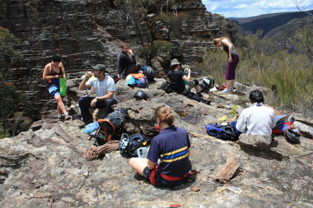 We had done some practise abseiling on a rock nearby and now we enjoyed lunch and views while we waited for the party ahead of us to ge through the canyon. |