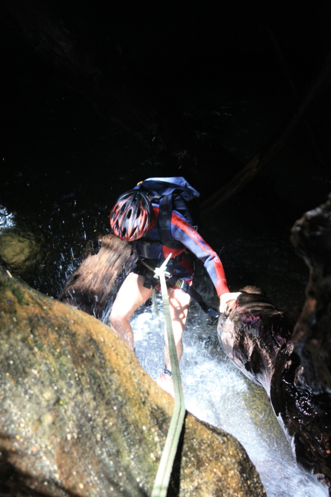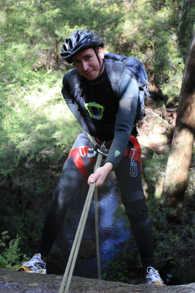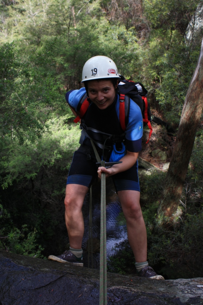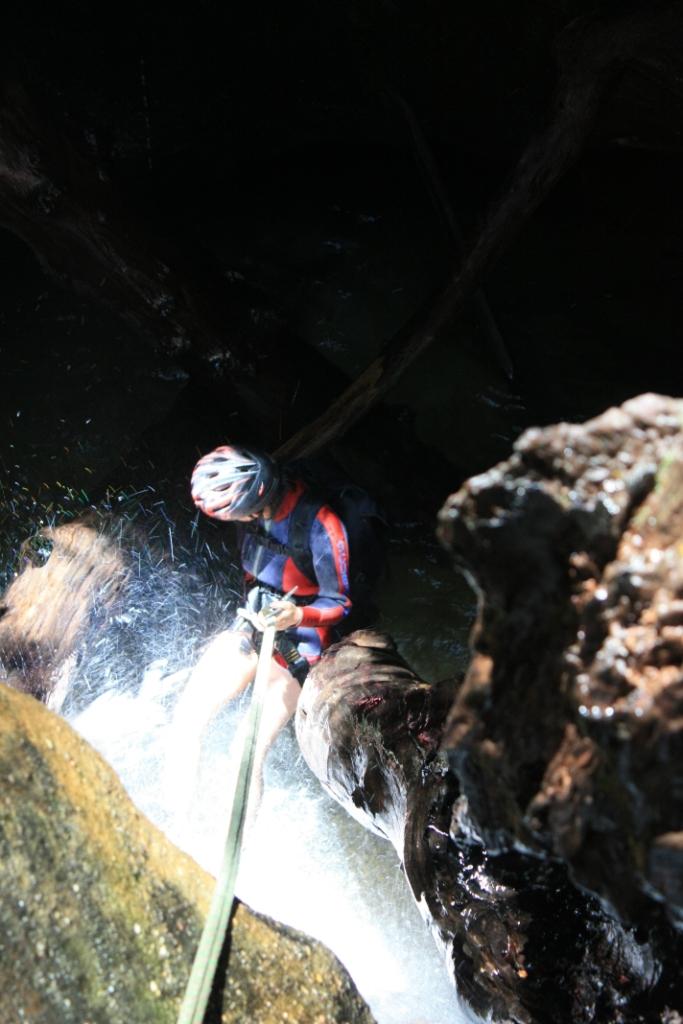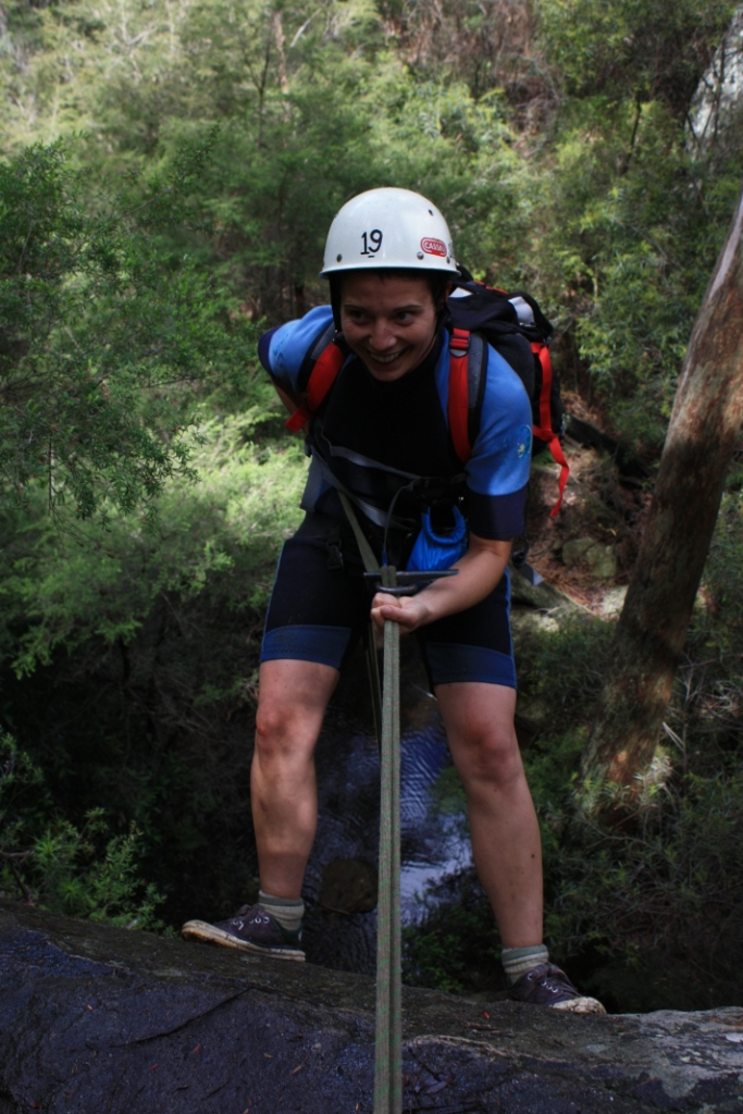 Here are some photos from the beginners' canyoning weekend of 29-30 Nov 2008. On the first day we did Tigersnake Canyon and on the second day we did Hole In The Wall canyon. On the Saturday night we enjoyed camping by the cars. The group comprised 10 people on the Saturday and 12 people on the Sunday. It was a great weekend full of great new experiences for many in the group. For some this was their first time abseiling in canyons.