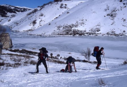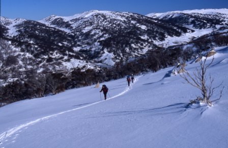 Getting Started on Day 1, the group begins the climb up Guthega Ridge (2 photos).