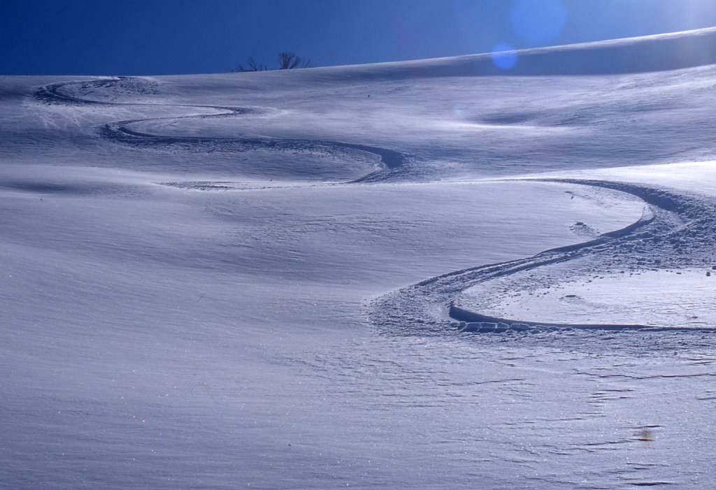 Ashley takes some time out to carve some 'S's in untracked snow.