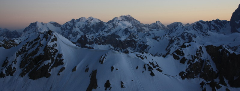 Evening views from a high camp near Zamok Peak in the Fann Mountains , Tajikistan