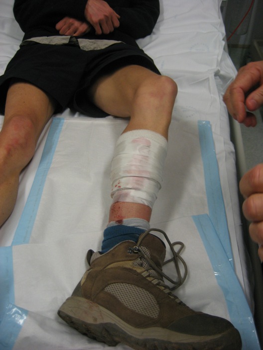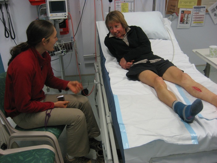Kendy turns up at Rylestone Hospital. She had cut her leg crossing a log early on Good Friday. |