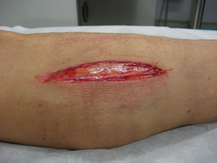 The wound before treatment. |