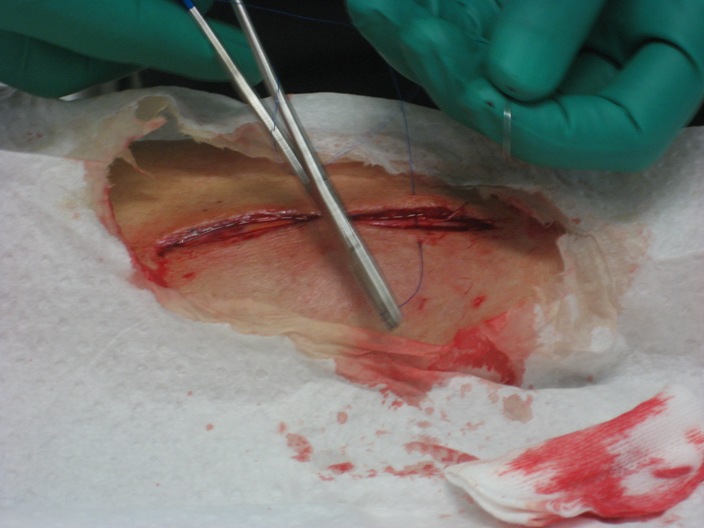 The first of 13 stitches. |
