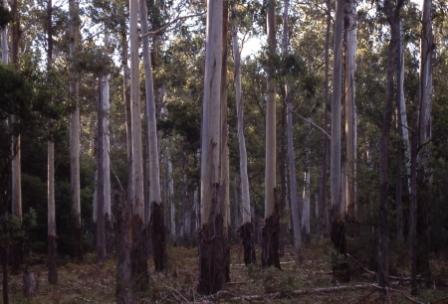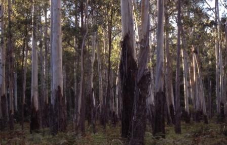 Down on Woila Creek, we find a forest of magnificent ribbon gums. | |
