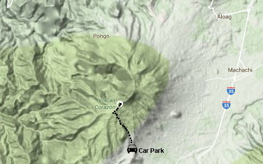 Right outside my little hostal in Quito was the office of Condor Trekk, one of many tour agencies in the Mariscal district of Quito where I was staying. At short notice the day before a guide was arranged and early on the morning of 8 July my guide was there waiting for me outside my hotel. We headed down to the Reserva Ecológica Los Illinizas, within whose borders the peak Corazon resides. As is often the case in Ecuador, the summit remained hidden in cloud throughout the day. The approach to the peal was made from the south east by 4WD on a rough narrow and muddy 4WD road. We reached an altitude of about 4000m by car which was about the altitude of the base of the clouds surrounding the peak.