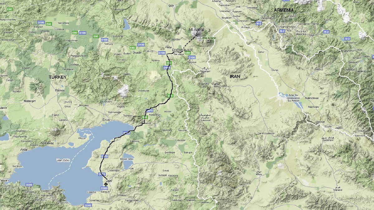 Map of Eastern Turkey. Starting from Van we travelled by vehicle to Doğubayazit and from there we started our Mt Ararat climb.