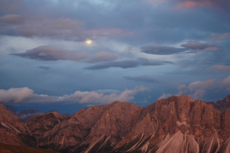 | 24 Jul 2010 | Depart Brixen on a cold, overcast and windy day. Pass through village of San Andrea then a long slow and dull climb to Plosehütte which is situated high on a mountain scarred by ski fields. After arrival at the hut we did a side trip to Gabler (2576m). Spectacular sunset cloud formations and dramatic moon. |