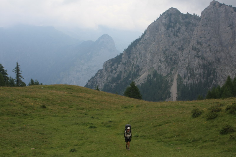 | 29 Jul 2010 | The lady drove us back to Malga Ciapéla and today the weather got worse again. We followed the AV2 around the Marmolada Massif and after sheltering for lunch at the rather fancy Rigugio Fuciade we eventually reached Passo di San Pellegrino in cold steady rain. We got the bus down to Falcade and found a hotel near the village of Caviola. Cold rain. |