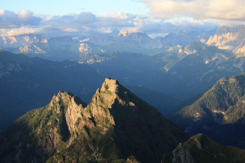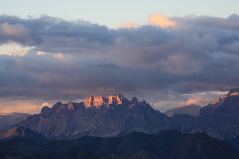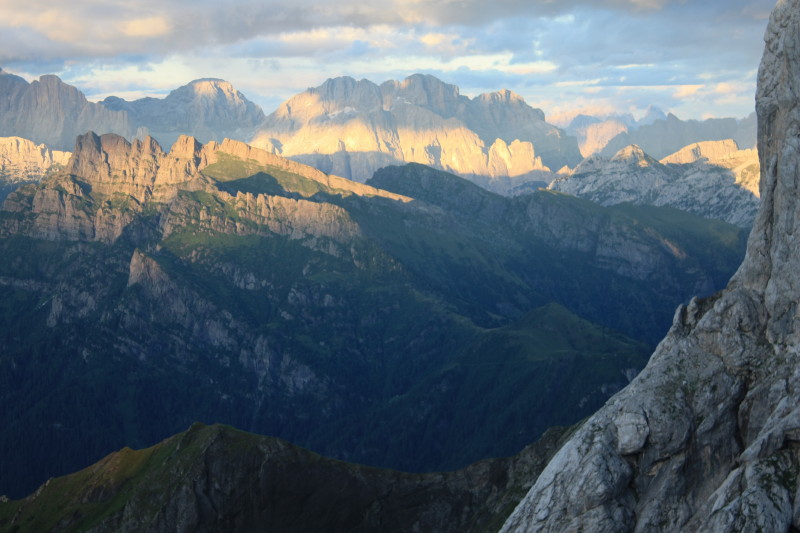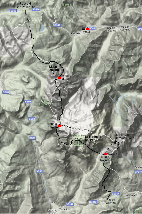 By now we were half way through the AV2 after 6 days of walking, yet we had allowed 14 days in total for the walk. So we realised we were about 2 days ahead of schedule. So we decided to do this stage of the walk over 5 days, and include side trips and detours wherever possible. Thus we made three separate side trips to the summit of Mt Mulaz (2906m) on Day 1, La Fradusta (2939m) on Day 2, and on Day 4 we did an excellent day hike from Rifugio Treviso up a via ferrata to a tiny bivvy hut near the peak of Croda Granda.