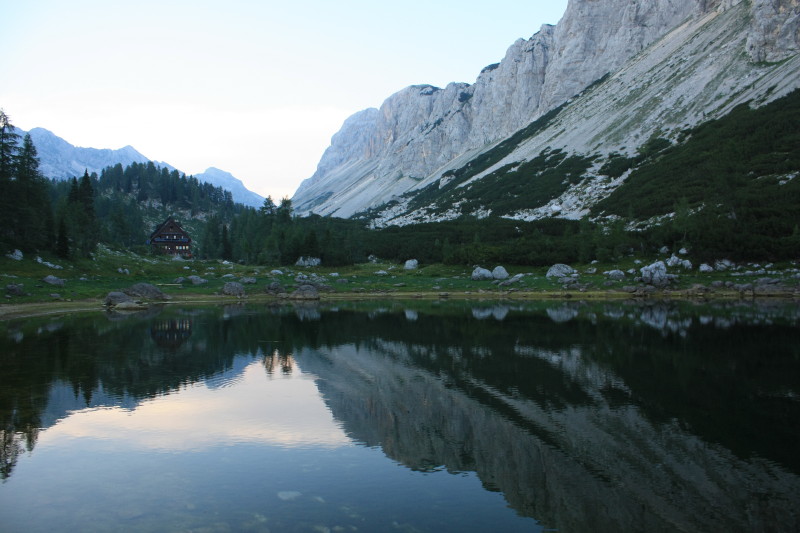 | 15 Jul 2010 | A hot humid day, and quite a long walk through limestone karst country. From Trenta we climbed up into the mountains, had lunch at Zasavaska koca (2071m), then walked on past mountain lakes and through confusing karst country to eventually reach Koča pri Triglavskih jezerih (1685m). Many other groups including a large scout group were cooking their own food outside the hut so we did the same. |