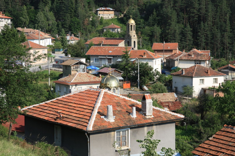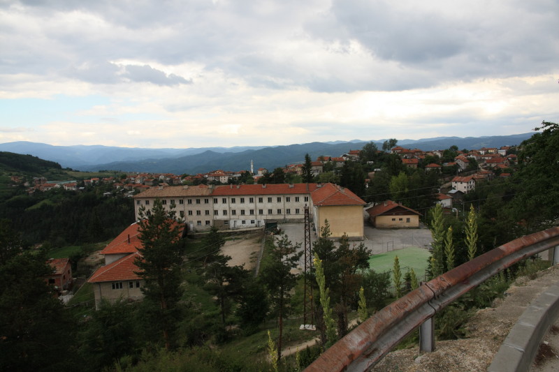 The village of Sveta Petka, about 10km west of Velingrad. From here is was a fast downhill run all the way into Velingrad. Culturally this area is Moslem and you can see the minaret of a mosque in the centre of this photo. |