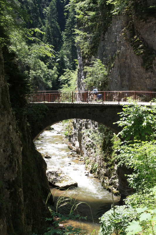 The highest and most famous mountains in Bulgaria are those known as the Rila and the Pirin, both of which are located in the soutwest of the country. Then there are the Balkan mountains which run east-west through the middle of Bulgaria. Lesser known are the Rodopi in the south, near the border with Greece. Not true mountains in the sense of the high peaks of the Rila and Pirin, rather the Rodopi comprise ranges of forested hills interspersed with deep valleys, gentle farmland, historic villages and quiet narrow winding roads. The most striking feature of the landscape is the steep limestone gorges which is home to some extensive limestone caves. There are some amazingly deep and rugged valleys with tiny roads hewn into them, roads which connect tiny remote mountain villages with the outside world. The Rodopi mountains therefore, are perfect for cycle touring and up to a week may be spent exploring this interesting area by bike.