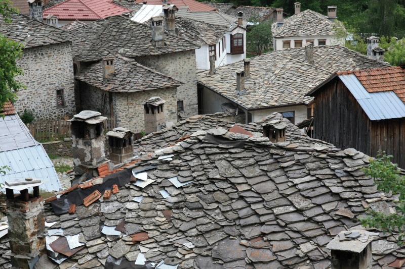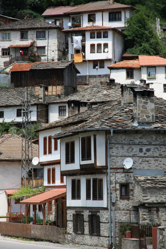 | 18 Jun 2013 | Another fine day. Descended back down the very steep road that we had come up the day before. Continued east to the historic village of Shiroka-Laka where there were heritage houses in a traditional Bulgarian style. There followed a long climb to an altitude of 1700m until finally there was a long descent to Smolyan. Our hotel was on the uphill side of town at 1116m, the town centre was still lower at about 900m. | Hotel in Smolyan. |