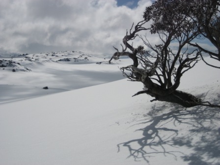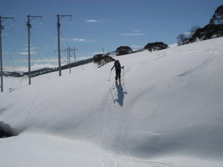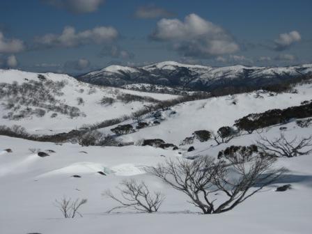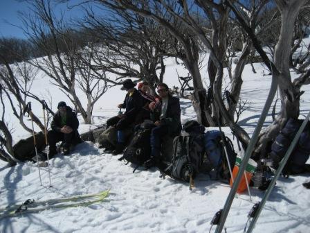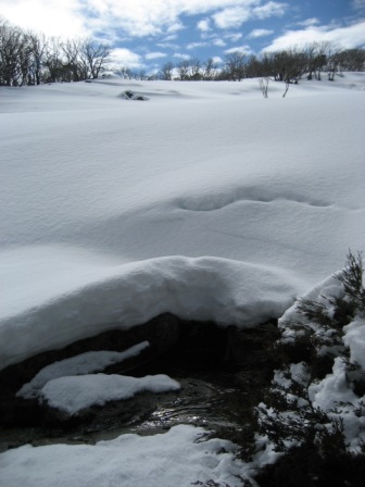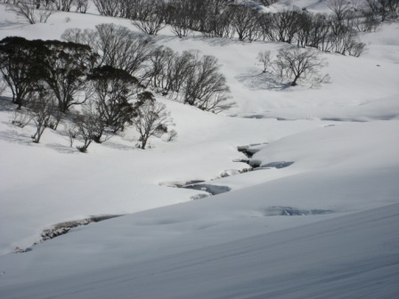 On Saturday morning we climbed from Guthega Power Station up the Schlink Road on patchy snow until we reached the deeper snow cover here at Whites River. |