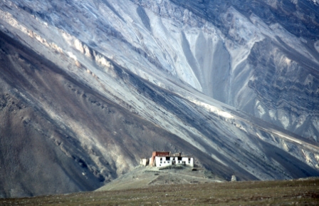 Day 26 - 13 Sep 1999 This is Ringdom Gompa, perched on a low hill in a wide valley surrounded by collosal mountains. |
