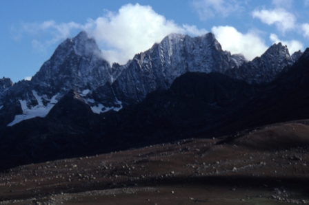 Day 7 - 25 Sep 1999 Today we did a day trip high onto the watershed above the lakes and gained these excellent views intothe disputed territories between India and Pakistan. |