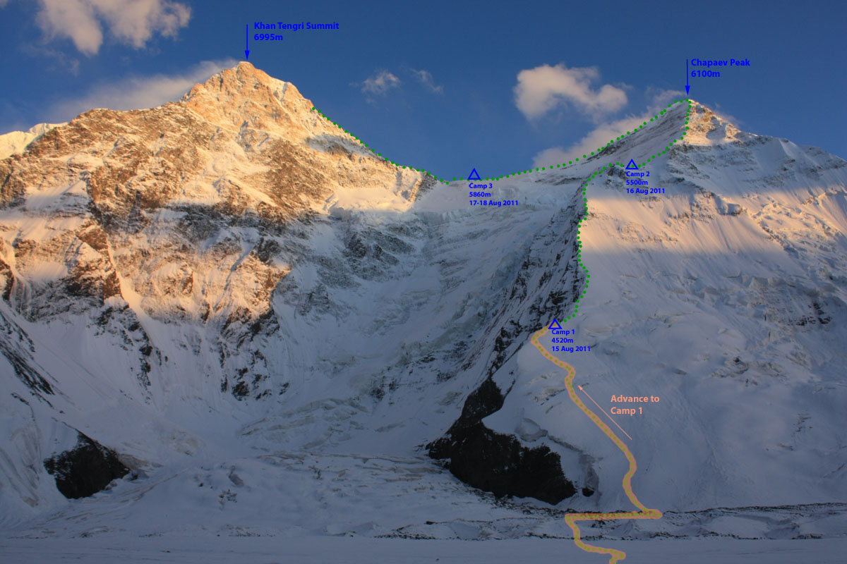 KAZAKHSTAN - The Marble Wall and Khan Tengri Traverse 15 Aug 2011 - Afternoon Advance to Khan Tengri Camp 1