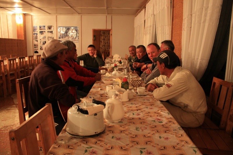 Back at Karkara Base camp we celebrate our survival with a feast and round after round of vodka in the main dining hall