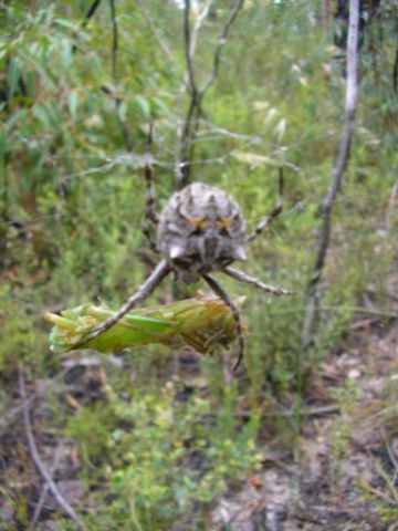 The Burkus Boydus Mottled Grey Studded Bottomed Spider, new to science, discovered near Mount Morgan on Day 2.
