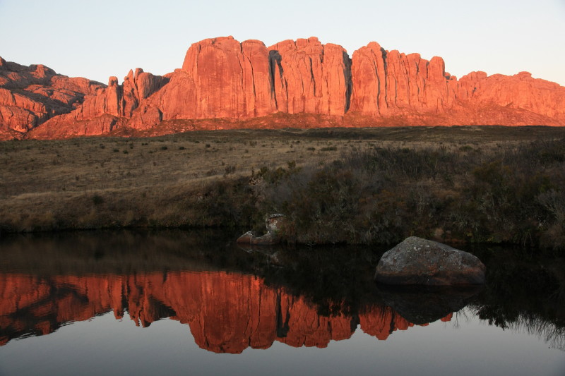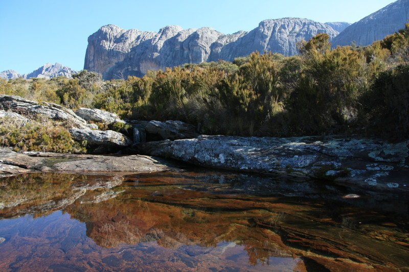 I spent 4 days exploring Andringitra National Park which lies about 50km south of the frontier town of Ambavalao and this was one of the highlights of my 2014 Madagascar adventure. Andringitra National Park is home to Madagascar's second highest mountain, Pic Imarivolanitra (or Pic Boby), at 2658m. The famous Tsaranoro Massif is a huge rock face admired by climbers and photographers. This rock face lies just outside the national park but from many vantage points on the Andringitra range, tremendous views of this great rock face can be seen. Andringitra is home to a rugged granite mountain range, crystal clear streams of water, an alpine plateau and some unique wildlife.