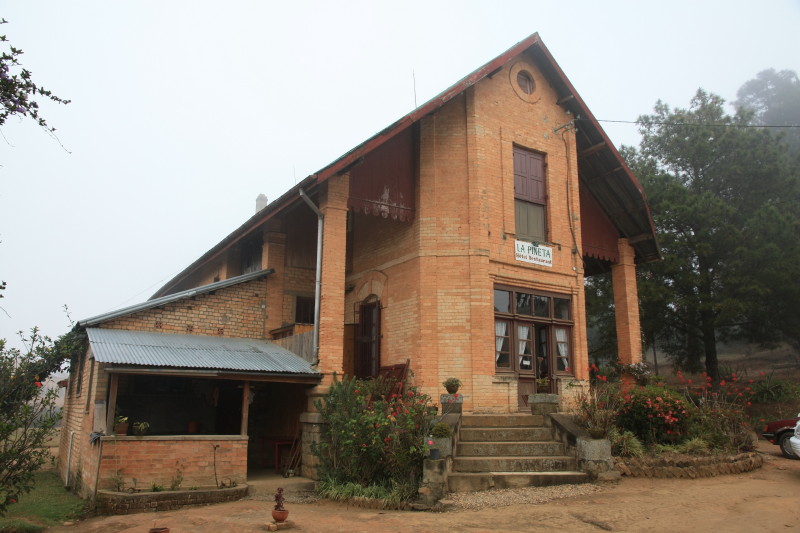 | 8 Sep 2014 | 71km | 1100m | 1540m | Antananarivo to Ambatolamby | Cycled from my hotel in central Antananarivo to the town of Ambatolampy, about 66km along the RN7. Some wrong turns getting onto the RN7 out of Antananarivo. The route climbed steadily and I was fatigued from a week of running. I was very drained and out of food when I arrived in Ambatolampy and found the Hotel La Pineta. This was a European style manor house, very quiet, I was the only guest. Bought some food in town and had dinner in the hotel restaurant. | Hotel La Pineta |