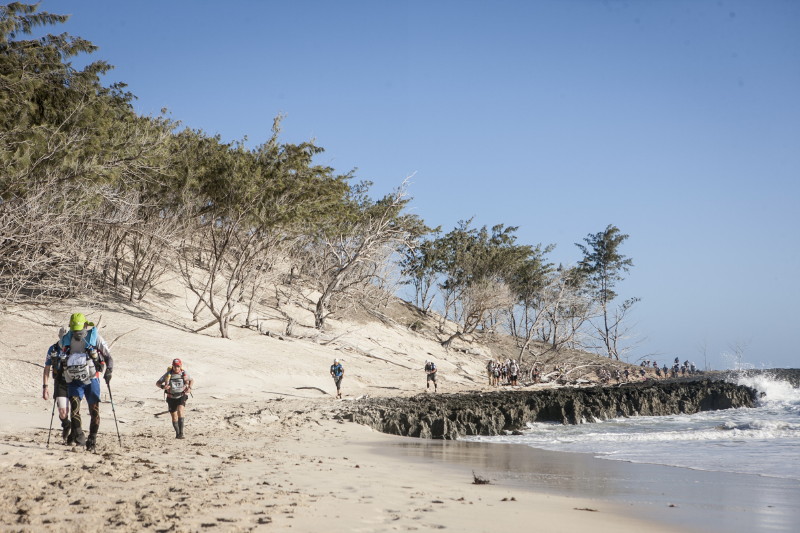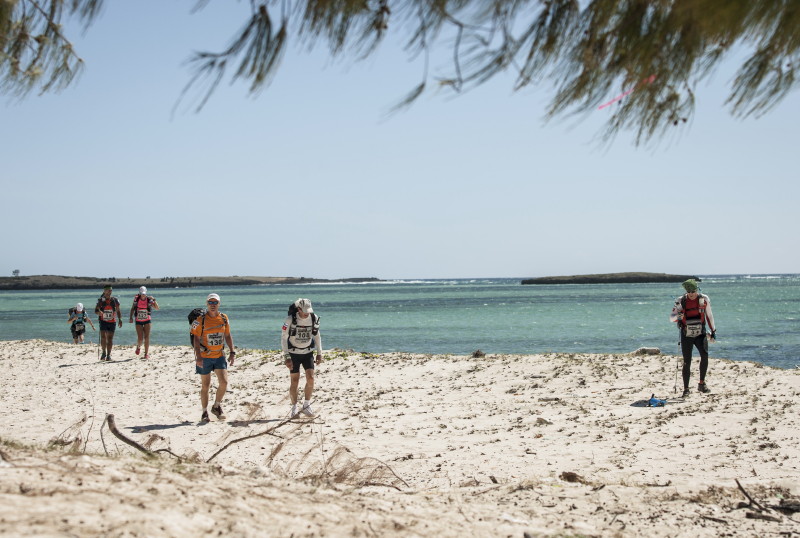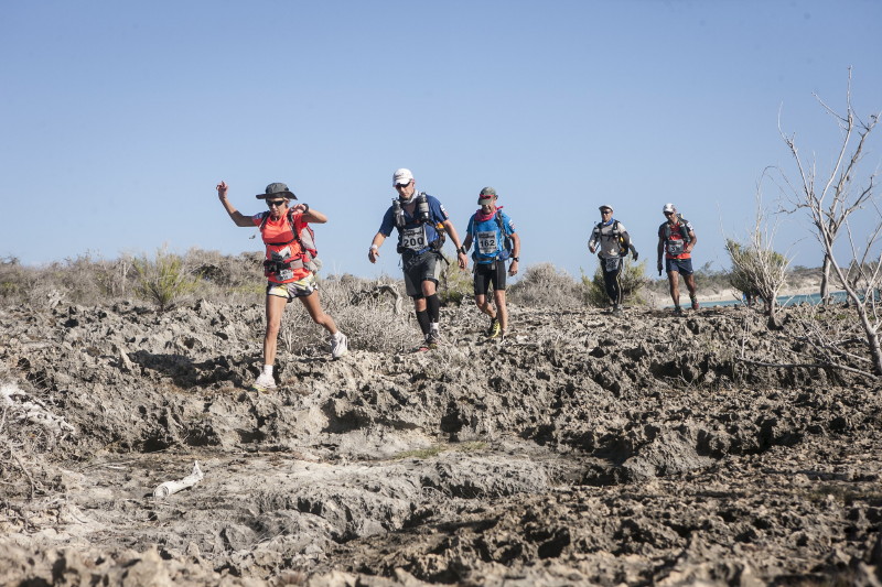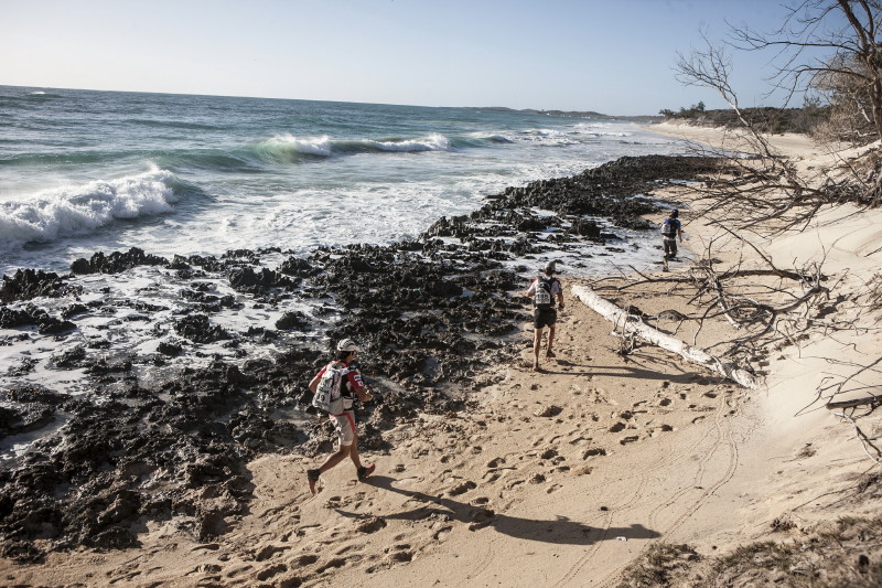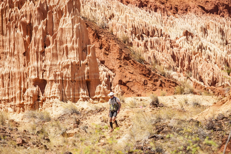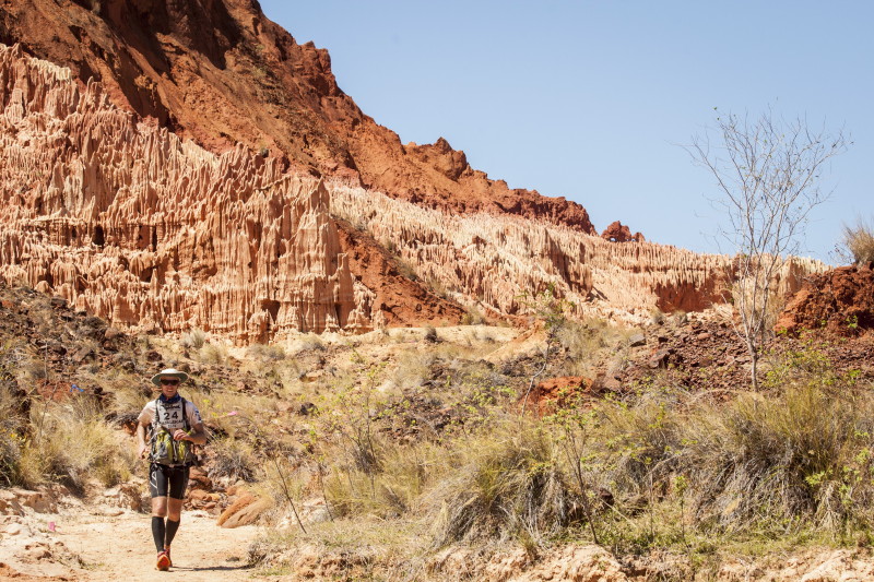 | 2 Sep 2014 | 3 | 42.1km | 6:31:15 | 36°C | A beach run in firm sand, then inland into the Red Tsingy reserve. Amazing rock pinnacles. The route climbed up then back down and doubled back on itself. Then up to the rim of the Red Tsingy canyon and around it on hot trails. Last 10km were very hard due to the hot dry conditions. Finally reached camp after a river crossing. |