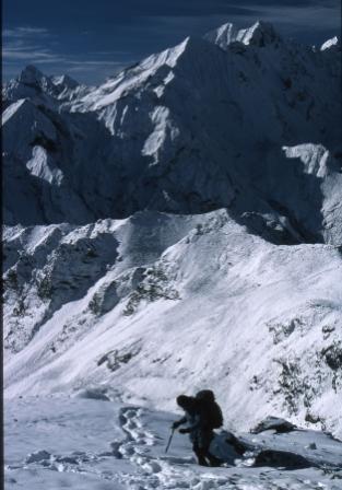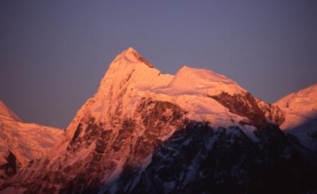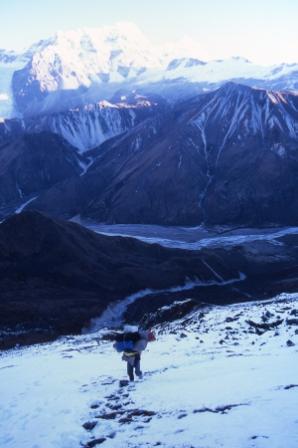Day 5 - 13 Oct 2004. As the sun came up Ang Pemba and I were already high on the slopes of Yala Peak, above 5000m. The scenery was of truly Himalayan proportions. |