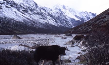 Day 6 - 14 Oct 2004. Astonishingly, it was snowing heavily again the next morning when we packed up and headed downhill into the Langtang valley. We had been so lucky with that one day window of perfect weather for the climb of Yala Peak! |