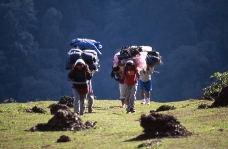 Day 12 - 20 Oct 2004. The porters, well laden, even 12 days into the trek. |