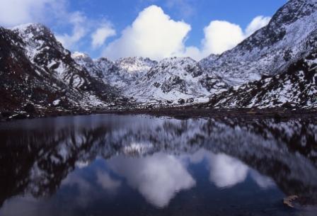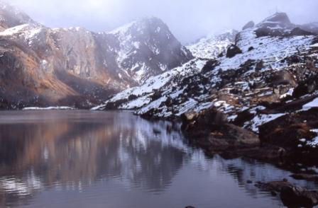 Day 15 - 23 Oct 2004. This is my favourite photo from this trek. Lake reflections in the Gosain Kund. |