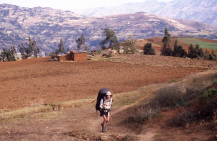 Today we travelled by taxi from Huaraz to the tiny rural village of Cashapampa (2950m), the starting point of the trek. Cashapampa lies at the outlet of the Santa Cruz valley. We would come down this valley in 2 weeks time, at the very end of the trek. But for now, we had to sidle around the base of the Cordillera Blanca to the small village of Hualcayan (3139m) from which our long climb into the Cordillera Blanca would begin. We arrived in Cashapampa around midday, leaving about half a day for the walk with our heavy packs to Hualcayan.