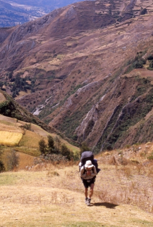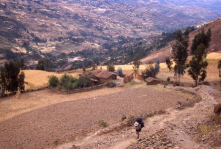 It was a long climb out of the Pomabamba valley with our heavy packs, but it was fascinating walking through delightful Peruvian farming communities. | |