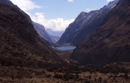 Then we headed across the Santa Cruz valley towards Alpamayo South base camp. Here is a view of Lake Jatuncocha. | |
