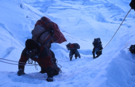 Here is one of the steep climbing pitches on the route to Camp 2. | |
