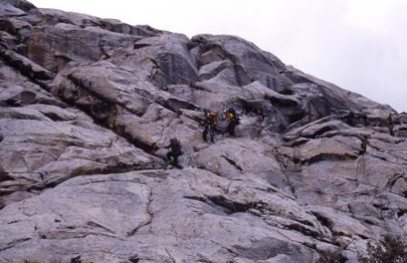 Downclimbing one of the steep sections between Camp 2 and Camp 1. | |